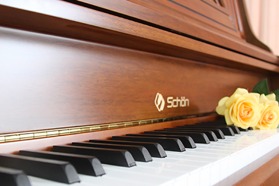 天然实木乌木黑键给予舒恩钢琴更佳的弹奏体验。