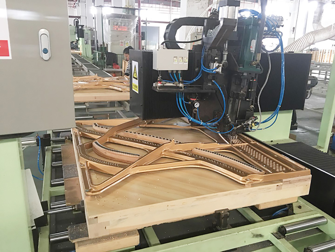 为了确保每一个零部件都能精准地和钢琴外壳融合到一起,舒恩花费巨资引进日本全数控机床辅助生产,而这样的全数控生产,目前国内的钢琴制造厂还屈指可数。